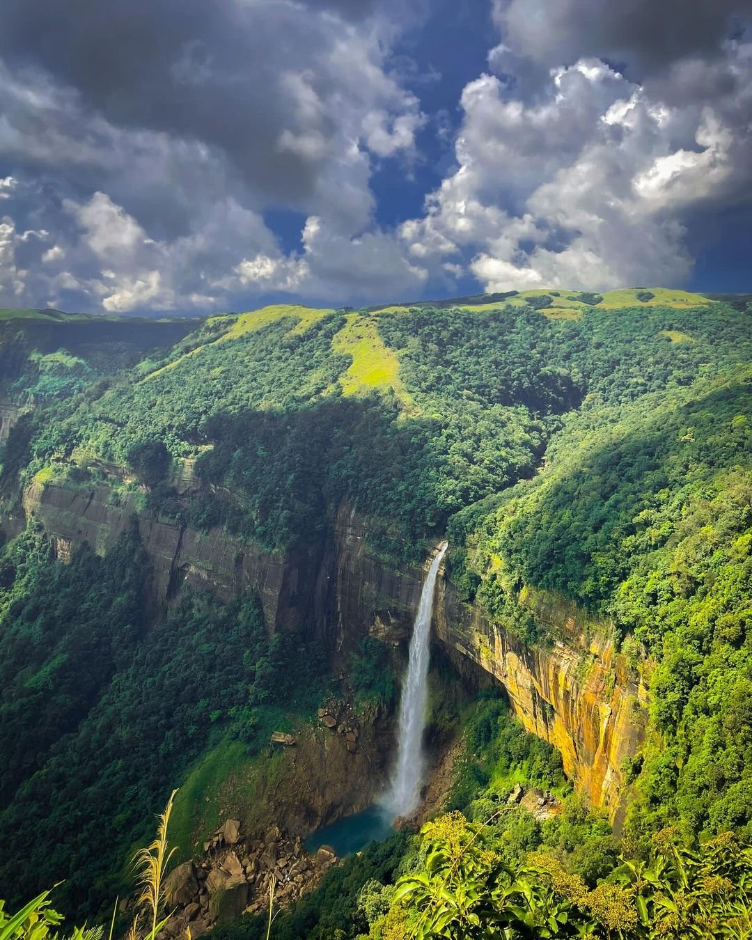The “Land of Clouds,” a northeast Indian state renowned for its stunning natural beauty, including mist-kissed hills, cascading waterfalls like Nohkalikai Falls, and unique living root bridges.